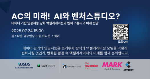 초기투자액셀러레이터협회(협회장 전화성, 이하 KAIA)는 오는 7월 24일(목) 오후 3시부터 6시까지 서울 팁스타운 명우빌딩 유니온스퀘어에서 ‘AC의 미래! AI와 벤처스튜디오?’를 주제로 세미나를 개최한다. 본 세미나는 데이터 기반 인공지능 기술이 스타트업 액셀러레이팅에 미치는 영향을 진단하고, 벤처스튜디오 모델의 진화 방향을 조망하기 위한 정책제안 성격의 자리로, 참가비는 무료다. 이번 세미나는 KAIA가 주최하고 ㈜팩트시트가 주관하며, ㈜벤처스퀘어, ㈜더인벤션랩, ㈜마크앤컴퍼니, ㈜씨엔티테크가 후원한다. 스타트업 액셀러레이터(AC), 벤처캐피탈(VC), 벤처스튜디오 관계자, 창업지원 운영기관 관계자 등 약 100여 명이 참석할 것으로 예상된다. 세미나 프로그램은 총 4개의 발표 세션과 패널토론, 네트워킹으로 구성된다. 첫 세션에서는 김진영 더인벤션랩 대표가 ‘글로벌 벤처 스튜디오 모델의 진화와 데이터 기반 창업 설계’를 주제로 발표한다. 이어 홍경표 마크앤컴퍼니 대표, 함세희 팩트시트 대표, 원대로 윌트벤처빌더 대표가 각각 데이터 기반 투자, AI로 변화하는 액셀러레이팅 서비스, AI 시대의 글로벌 초기투자 시장 분화와 새로운 기회에 대해 발표할 예정이다. 패널토론은 전화성 초기투자액셀러레이터협회 회장, 명승은 벤처스퀘어 대표(좌장), 김진영 대표, 원대로 대표가 참여해 ‘AI 기반 액셀러레이션’과 ‘벤처 스튜디오 구조 혁신’을 주제로 인사이트를 나누고, 청중과의 질의응답도 진행된다. 초기투자액셀러레이터협회 전화성 협회장은 “이번 세미나는 AI 기술 도입과 데이터 활용이 초기 스타트업 투자 및 지원 방식에 어떤 패러다임 변화를 가져올지 진단하고, AC와 벤처스튜디오의 역할과 기회를 함께 모색하는 자리가 될 것”이라며 “정책 및 산업 현장의 목소리를 바탕으로 지속 가능한 창업생태계를 설계할 수 있도록 협회 차원의 논의도 이어가겠다”고 밝혔다. 관련 기사 더보기 https://www.venturesquare.net/988674