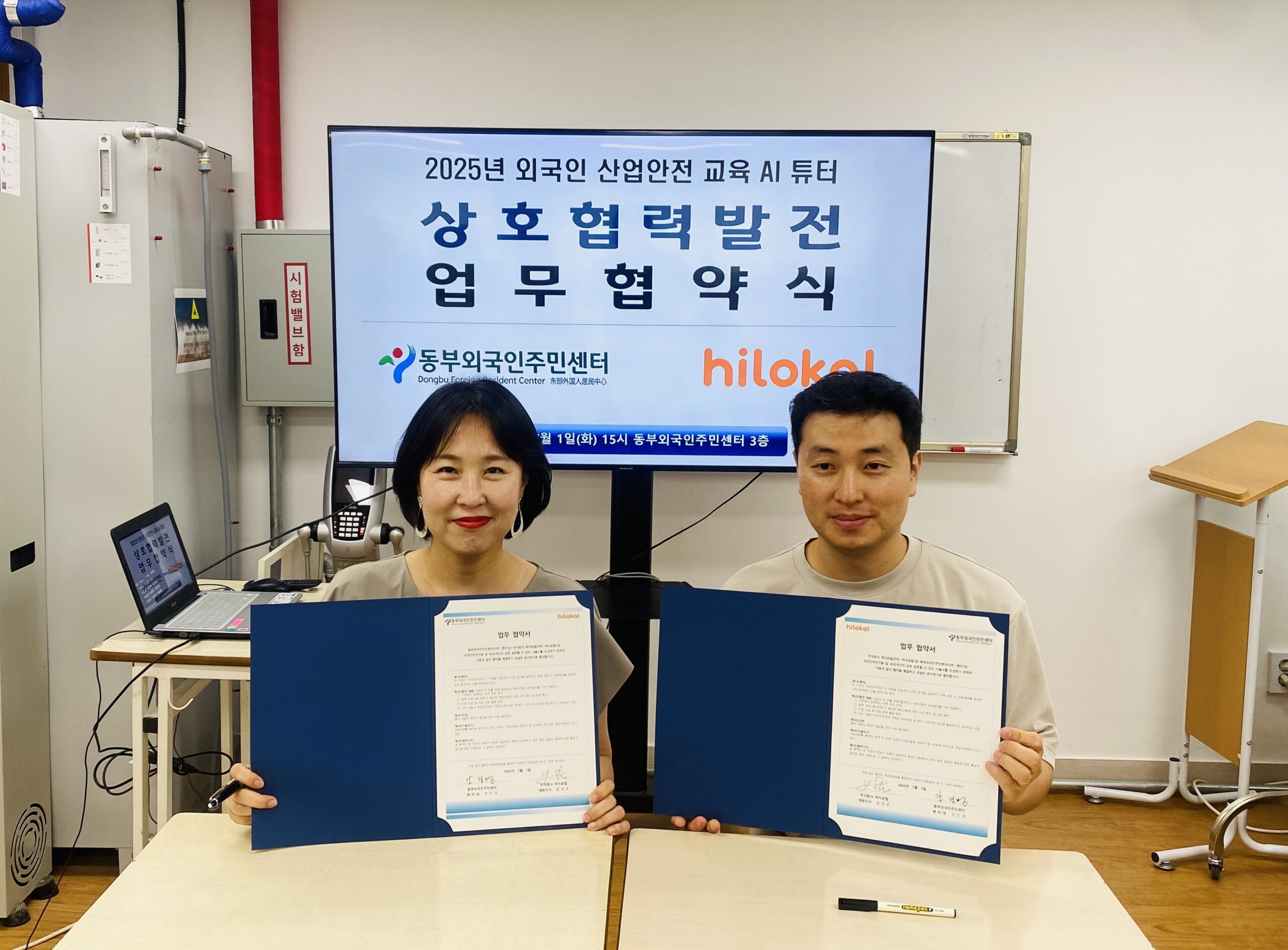㈜하이로컬(대표 윤정호)은 동부외국인주민센터(센터장 안진경)와 외국인 대상 산업안전 교육을 위한 AI 튜터 실증 사업 추진을 위한 업무협약(MOU)을 체결했다고 1일 밝혔다.