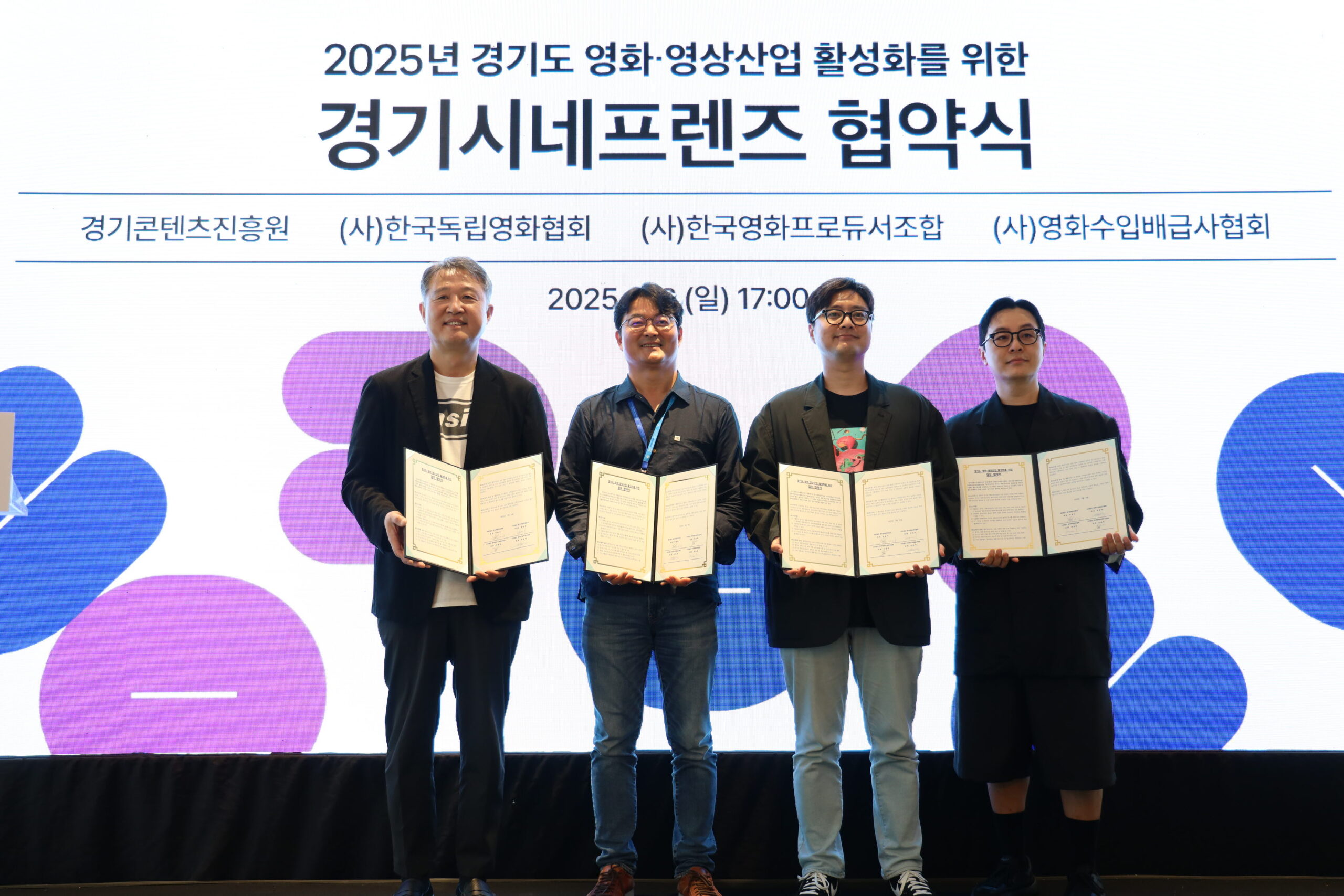 이와 함께 경콘진의 영화·영상 지원 사업 소개와 더불어 도내 영화·영상산업 기반 조성을 위한 민관 협력 네트워크 ‘경기시네프렌즈’ 협약식이 진행됐다. 협약에는 경콘진과 한국독립영화협회, 한국영화프로듀서조합(PGK), 영화수입배급사협회가 참여해 공동 협력을 약속했다.
