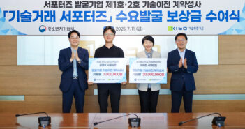 기술보증기금(이사장 김종호, 이하 ‘기보’)은 11일(금) 기보 서울사무소에서 '기술거래 서포터즈 수요발굴 보상금 수여식'을 개최하고, 기술이전 계약 성사에 기여한 서포터즈에게 보상금을 전달했다고 밝혔다. 이번 행사는 기술거래 서포터즈 활동을 통해 최초로 기술이전 계약이 성사된 사례를 기념하고, 현장 중심의 기술이전 수요 발굴을 더욱 활성화하기 위해 마련됐다. 또한, 서포터즈 간의 노하우를 공유하고, 활동 과정에서의 애로사항과 제도 개선 의견을 나누는 간담회도 함께 열렸다. 기보는 중소벤처기업부의 '중소기업 기술거래 활성화 지원사업'의 일환으로 올해 2월부터 정식으로 기술거래 서포터즈 제도를 운영해왔다. 기보는 업무협약을 통해 중소기업과의 접점을 보유한 협력기관 소속 인력을 서포터즈로 위촉하고 기술 수요기업 발굴과 기술이전 제도 안내 등 현장 중심의 활동을 지원하고 있다. 현재까지 중소벤처기업진흥공단 등 총 18개 기관과의 협약을 통해 189명의 서포터즈가 전국에서 활동 중이며, 기보는 이들이 발굴한 수요기업이 기술이전 계약을 체결할 경우 그 성과에 대해 보상금을 지급하고 있다. 이날 보상금이 수여된 제1호 사례는 한남대학교 창업보육센터 소속 설명우 서포터즈가, 제2호 사례는 남서울대학교 창업보육센터 소속 이래진 서포터즈가 발굴한 기업이 체결한 기술이전 계약으로, 각각 700만원과 2000만원 규모의 계약이 성사됐다. 이상창 기보 이사는 “기술거래 서포터즈는 중소기업이 필요로 하는 기술수요를 현장에서 발굴하고, 유망기술이 수요기업에 성공적으로 이전될 수 있도록 중요한 역할을 수행하고 있다”며, “기보는 앞으로도 성과 기반의 보상으로 서포터즈 활동을 적극 지원하고 유관기관과의 협업을 확대해 기술이전 수요기업 발굴이 활발히 이루어질 수 있도록 최선을 다하겠다”고 밝혔다. 관련 기사 더보기 https://www.venturesquare.net/991689