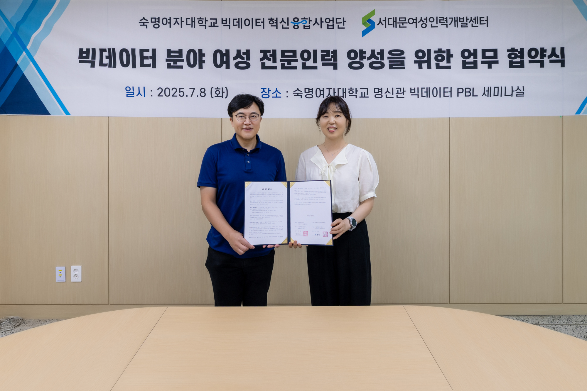 7월 8일 숙명여자대학교 명신관에서 진행된 협약식에는 숙명여대 빅데이터 혁신융합사업단과 서대문여성인력개발센터 관계자들이 참석했다. 이번 협약은 경력단절여성의 사회 복귀 지원과 빅데이터 분야 진입 장벽 완화, 분석 역량 강화를 통한 취업 및 창업 경쟁력 제고를 목표로 한다.