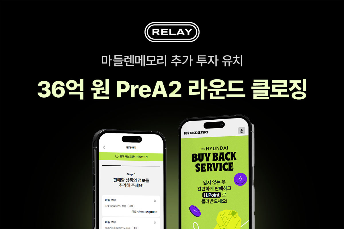 Madeleine Memory, a startup that operates the brand resale solution 'Relay', announced on the 17th that it has finalized its Pre-A2 investment round by attracting an additional investment of a total of 1.5 billion won from the Korea Credit Guarantee Fund and MY Social Company (MYSC). The total investment amount for this round is 3.6 billion won.