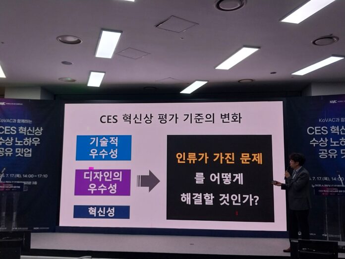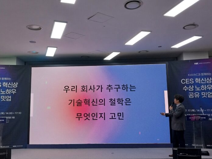 Kim Hyun-seong, CEO of Kim Venturous, who has been providing consulting services for CES (Consumer Electronics Show) awards for many years, gave a session on the topic of CES Innovation Awards at the 'CES Innovation Awards Know-How Sharing Meetup' with 'KoVAC (Korea VR AR Complex)' operated by the Next Generation Convergence Content Industry Association.