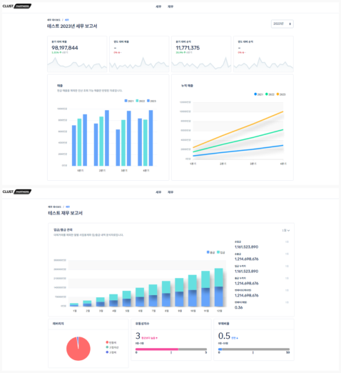 내부 회계팀이 따로 없는 초기 스타트업들을 위해 CFO(최고재무책임자) 역할을 대신할 수 있는 ‘클러스트 리포트’ 서비스도 자체 개발해 제공하고 있다. 회계, 세무, 자금 데이터부터 KPI, IR 슬라이드까지 한 대시보드 화면에서 관리할 수 있다.