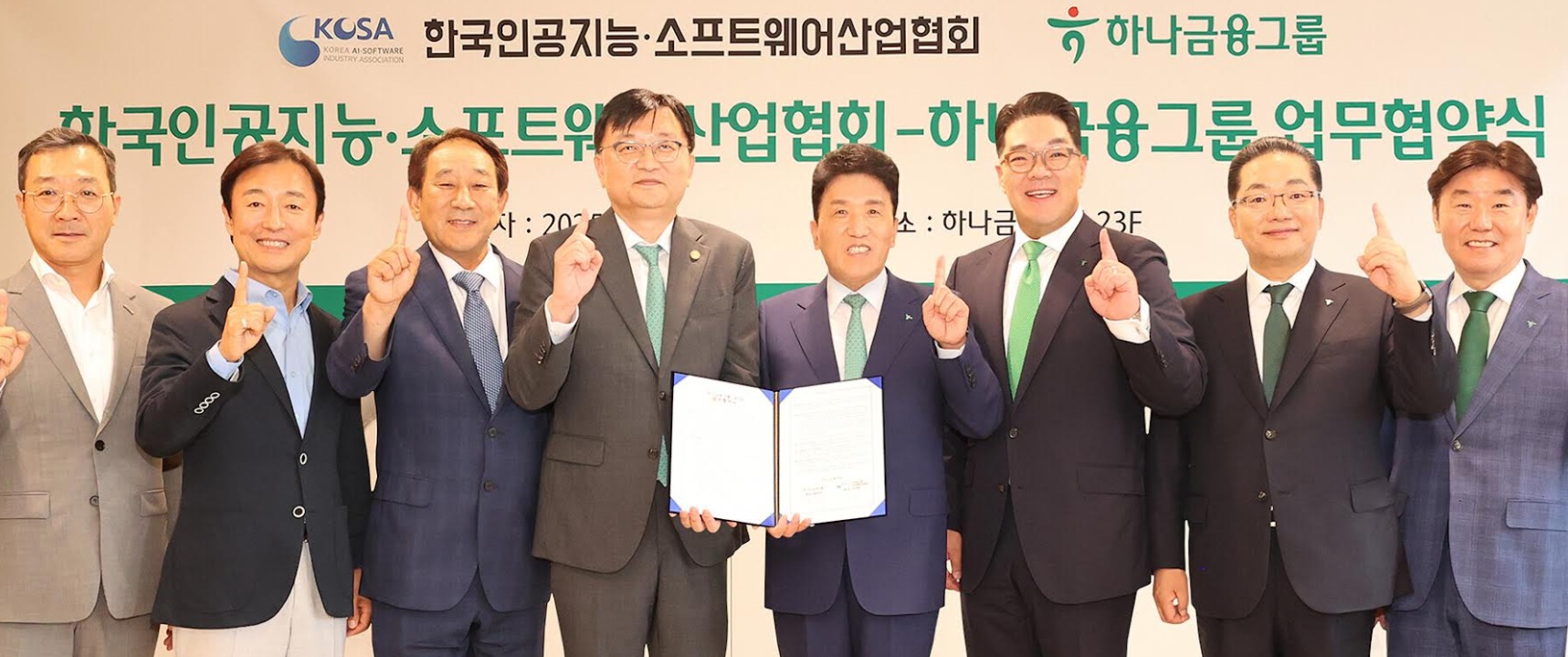 両機関は去る7月25日、ソウル中区ハナ金融グループ明洞社屋で業務協約(MOU)を締結し、国内AI技術力強化とデジタル転換支援のための多様な共同事業を推進することに合意した。協約式には、KOSAチョ・ジュニ協会長とハナ金融グループハム・ヨンジュ会長をはじめとする主要関係者が参加した。