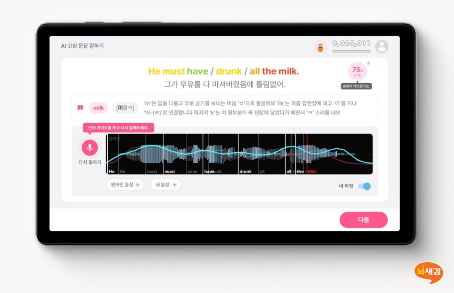 이번 기술은 학습자의 음성 데이터를 기반으로 단어 및 음소별 발음 정확도를 평가하며, 원어민 발음과의 1:1 비교를 통해 발음 일치도, 억양, 강세 등에 대한 다면적 피드백을 제공하는 방식이다. 피드백을 기반으로 학습자는 반복 연습을 통해 발음 교정을 진행할 수 있다.