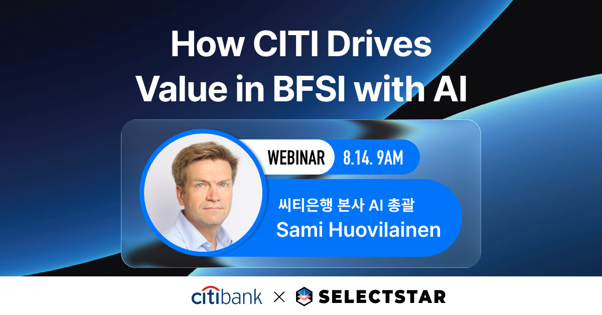 SelectStar (CEO Kim Se-yeop), an AI technology startup, announced that it will hold an online webinar with global financial institution Citibank on the 14th at 9:00 AM (Korean time) to share strategies for utilizing artificial intelligence (AI) in the financial industry.