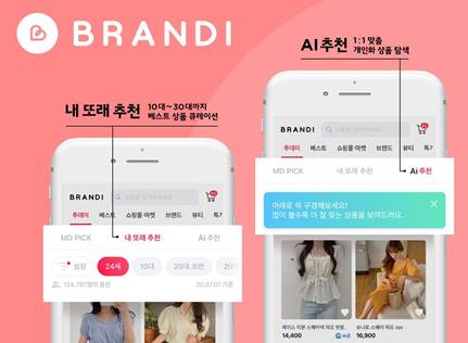 패션 스타트업 브랜디가 알고리즘을 통한 큐레이션 상품 추천 기능인 ‘내 또래 추천’ 서비스와 아마존웹서비스(이하 AWS) 인공지능 기반 개인화 추천 서비스를 활용한 ‘AI 추천’ 기능을 새롭게 도입했다고 6일 밝혔다.