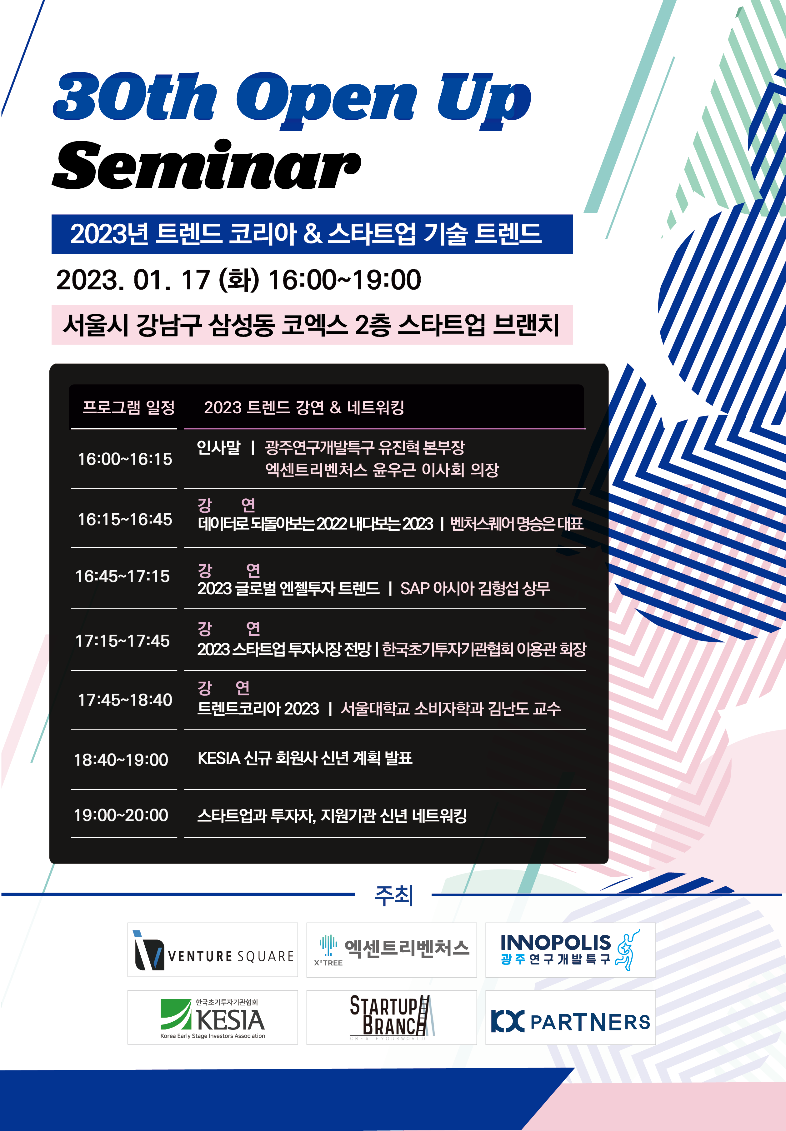 오픈업은 벤처스퀘어가 정기적으로 개최하고 있는 주제형 세미나 입니다.