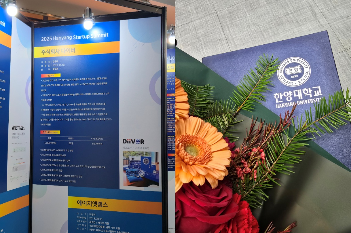DiiVER, a goods production platform company, announced that it has been awarded a commendation for being selected as the best performing company for two consecutive years in the Entrepreneurship-centered University Project, supported by the Ministry of SMEs and Startups and the Korea Institute of Startup & Entrepreneurship Development and hosted by Hanyang University.