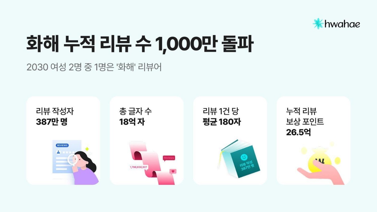 Hwahae, a beauty platform operated by Hwahae Global (Respective CEOs Woong Lee and Kyungil Kim), announced on the 9th that it has released the '10 Million Reviews, 10 Million Settlement' content and prepared a user appreciation event to celebrate reaching 10 million cumulative reviews.
