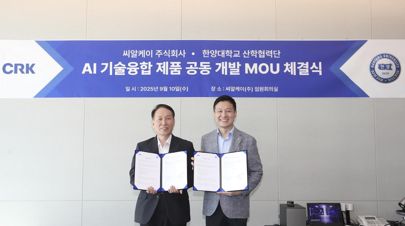 Cet accord a été signé le 10 septembre dans la salle de conférence du siège de CRK, et les deux organisations prévoient de promouvoir conjointement la transformation numérique et l'avancement de l'industrie de la réfrigération et de la congélation en combinant les capacités de recherche en IA de l'Université Hanyang avec l'expérience industrielle de CRK.