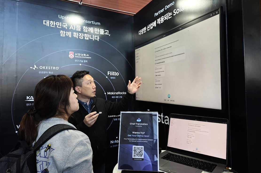 プリトはアップステージコンソーシアムメンバー社の中で唯一公式参加し、高品質なデータ構築技術の力量を立証した。プリトのAI通訳ソリューション「チャットトランスレーション(Chat Translation)」に大型言語モデル(LLM)「Solar open 100B」を組み合わせ、実際のサービス環境での応用事例を実演した。デモの結果、Solar open 100Bは韓国語特化モデルでグローバルビッグテックモデルと比較して競争優位を示したという評価を受けた。