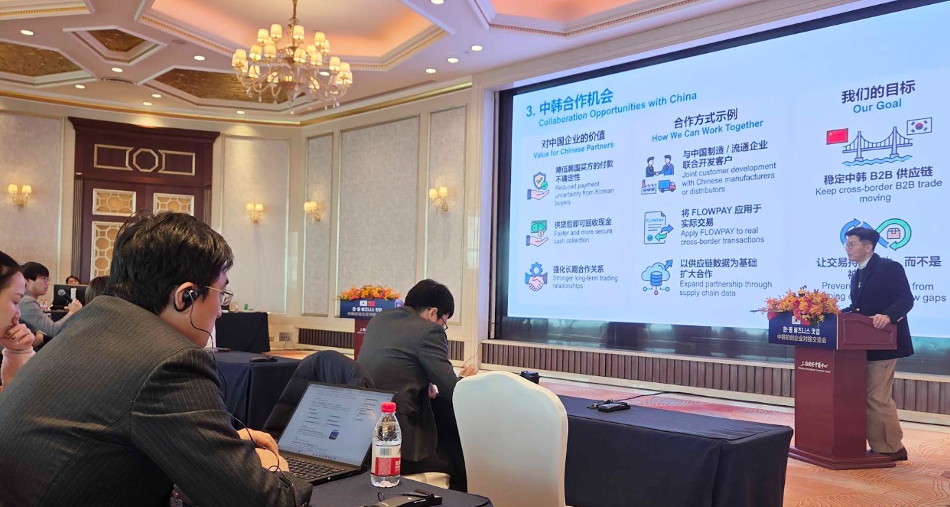 発表に乗り出したパク・ジンヨン276ホールディングス戦略理事は、中国語の挨拶で現地出席者たちとコミュニケーションし、「韓中供給網の資金の流れを再定義する」というメッセージを中心に276ホールディングスの「フロウペイ」ベースのコラボレーション構造を紹介した。発表内容には中国現地生産・流通企業と韓国企業間の決済時差問題、既存金融が接近できなかった中小・中堅企業対象流通基盤資金支援、データ基盤取引検証によるリスク管理案などが含まれた。フローペイは金融商品ではなく、流通・購入代行構造を基盤に実際の物流と取引の流れに密着して運営されるという点が強調された。