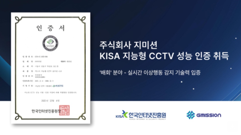 AIソリューション専門企業ジミッションは、韓国インターネット振興院からインテリジェントCCTV性能試験認証のうち、配回検知分野認証を獲得したと明らかにした。インテリジェントCCTV性能試験認証は、侵入、徘徊、有機など異常状況検知アルゴリズムの精度と信頼性を評価する国内唯一の認定認証制度だ。