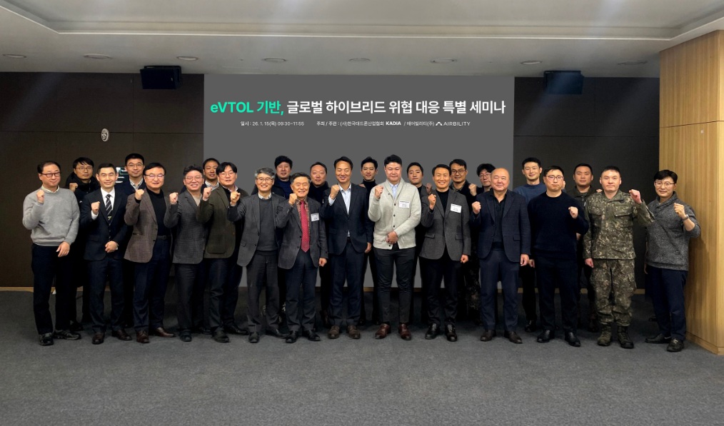 韓国大ドローン産業協会(KADIA)とエアビリティ(株)は15日、板橋第2テクノバレーで「eVTOLベースのグローバルハイブリッド脅威対応特別セミナー」を開催したと明らかにした。今回の行事は、eVTOL(垂直離着陸電気航空機)を未来型都心交通手段を超え、国家安全保障と公共安全分野の戦術プラットフォームに再照明するために設けられた。