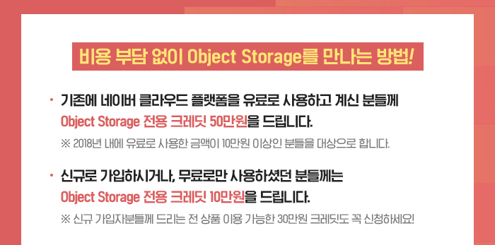 클라우드 스토리지 최대 50만 원 크레딧을 놓치지 마세요! 신청기간은 2018년 11월 30일까지 입니다.