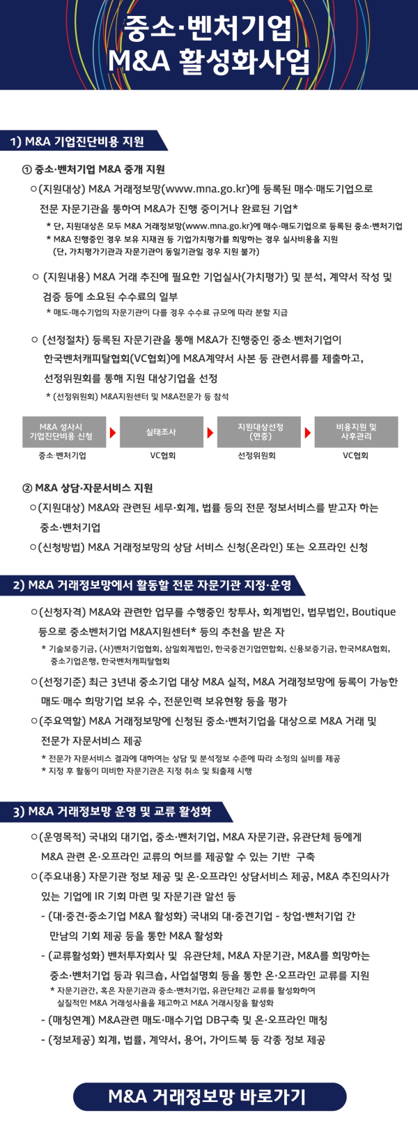 중소 벤처기업 M&A 활성화사업 안내를 보내드립니다. 지원 대상과 지원 내용을 살펴보세요.