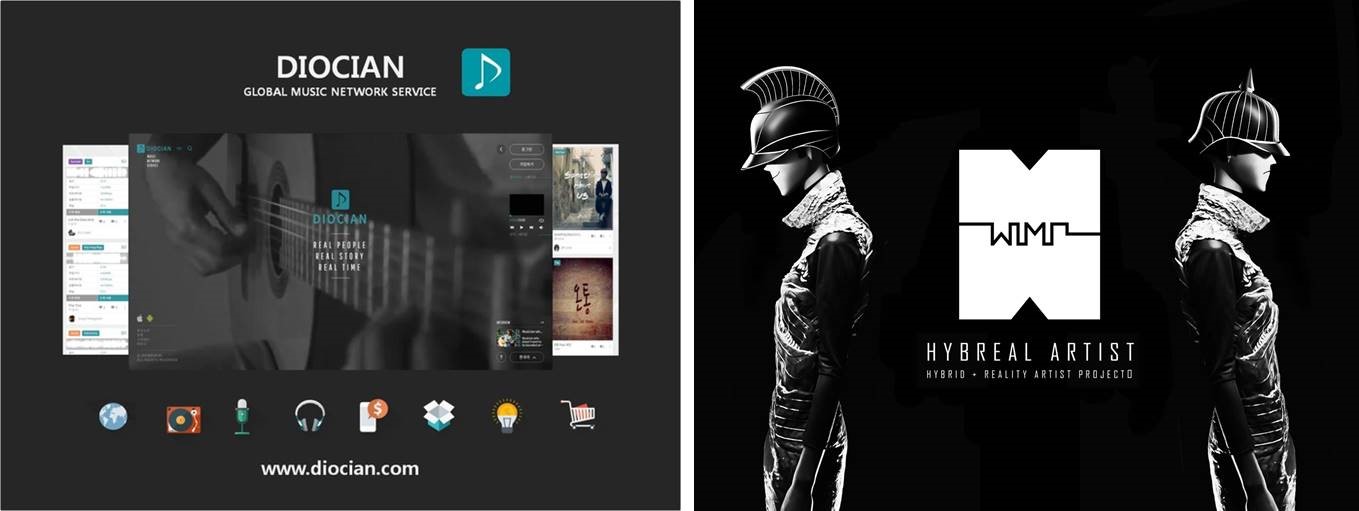 通过DIOCIAN制作的音乐不仅在ITUNES、SPOTIFY、谷歌音乐等海外音乐网站,还有Mellon、Nver music、Genie等国内音乐网站上也可以找到,在全世界约45个国家的音乐服务频道、80个国家内同时在流通销售。另外,由多数艺术家联合制作的音乐的收益可以在网站上直接进行利益协商和分配。