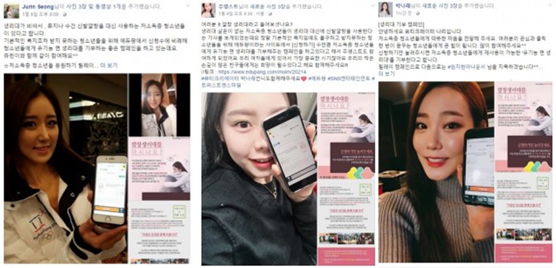Edutech服务品牌Edupang和SNS娱乐成功在FACEBOOK上进行”卫生巾捐赠运动应援接力”.