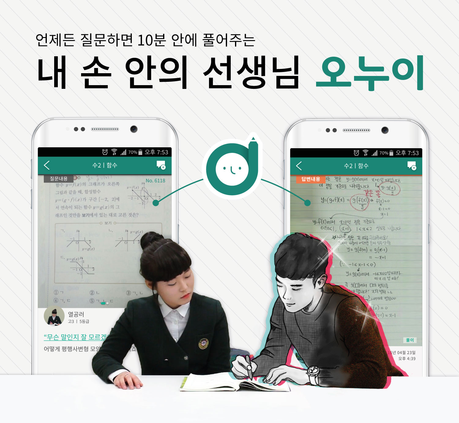ONUI是一款为初高中生提供问题答疑的服务软件。学生们如果有不会的问题,用智能机把问题照下来提问的话,在10分钟以内可以得到有资质的验证的导师来进行详细解答。而费用仅仅是课外辅导费用的十分之一(月3~5万韩币),但是无论何时何地都能得到疑惑解答,因此运营不过才一年,加入的学生数量就超过了8万名。同时,给提供疑惑解答的导师也不必要另外空出时间,照样可以获取利润创造收益。