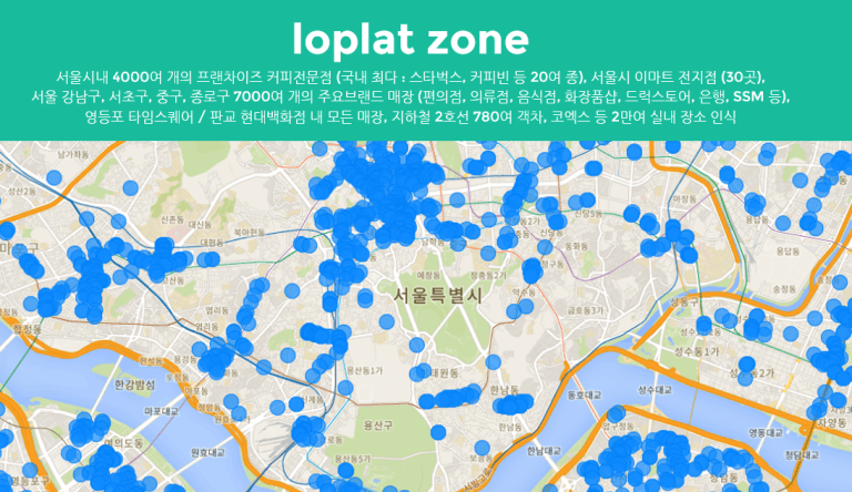 Loplat provides prior and current location information of customers to companies. Companies can provide customers with more targeted activities through the Loplat service and can also measure customer flow in the competitive shopping sector by analyzing the status information of customers and use it in marketing and business strategy with customer habits and trade area analysis.