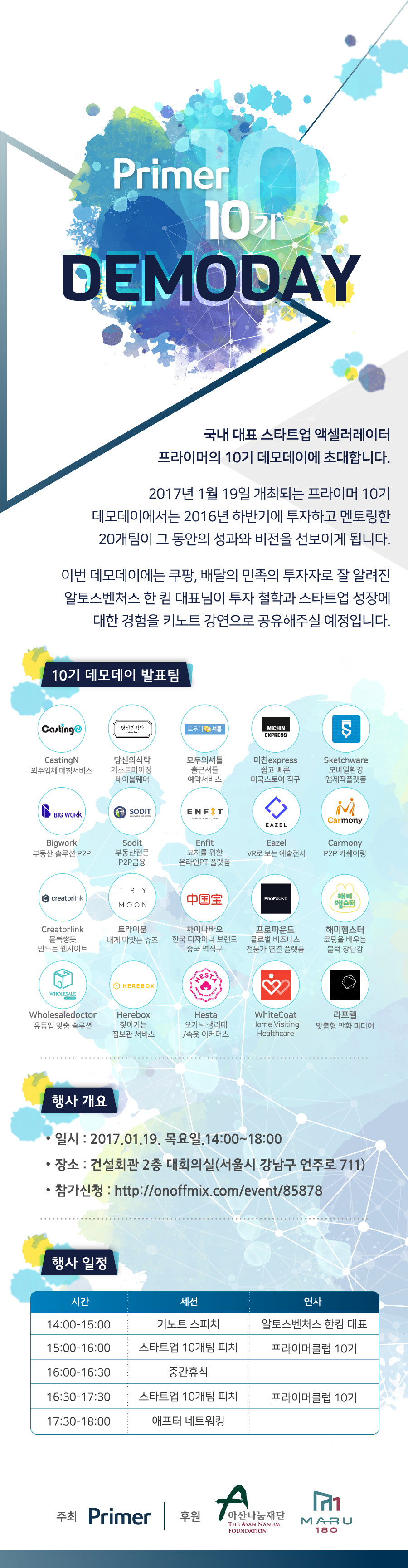 17:00-17:30 初创企业10个团队展示 PRIMER10期